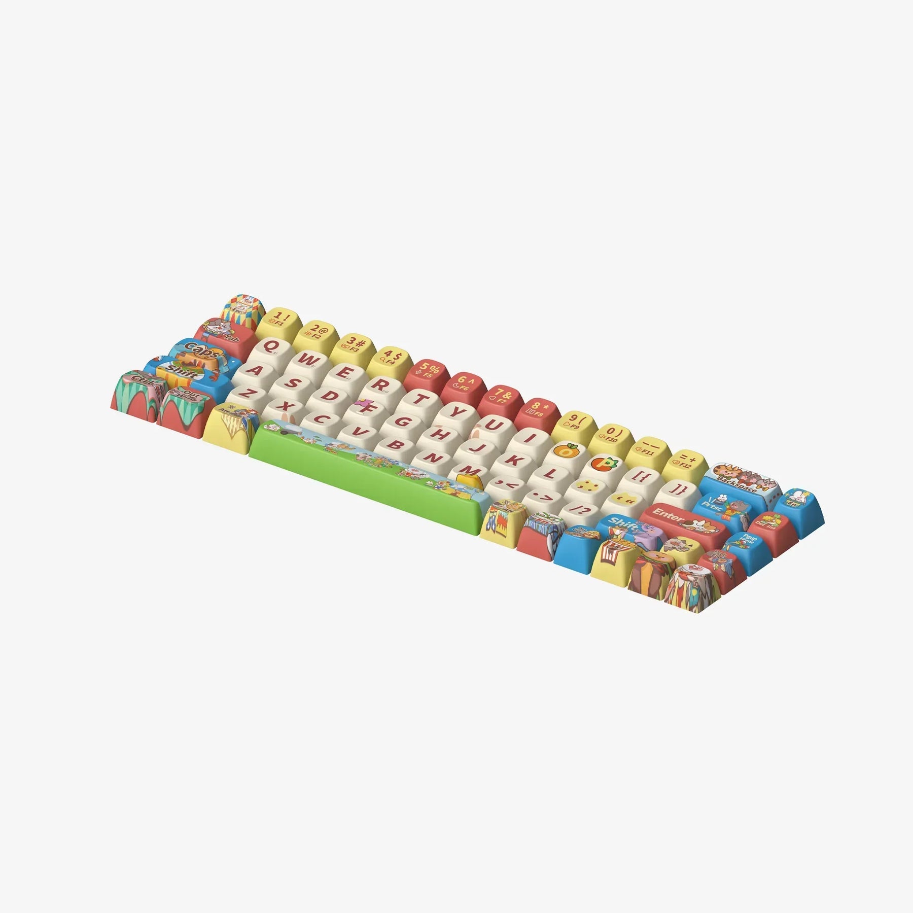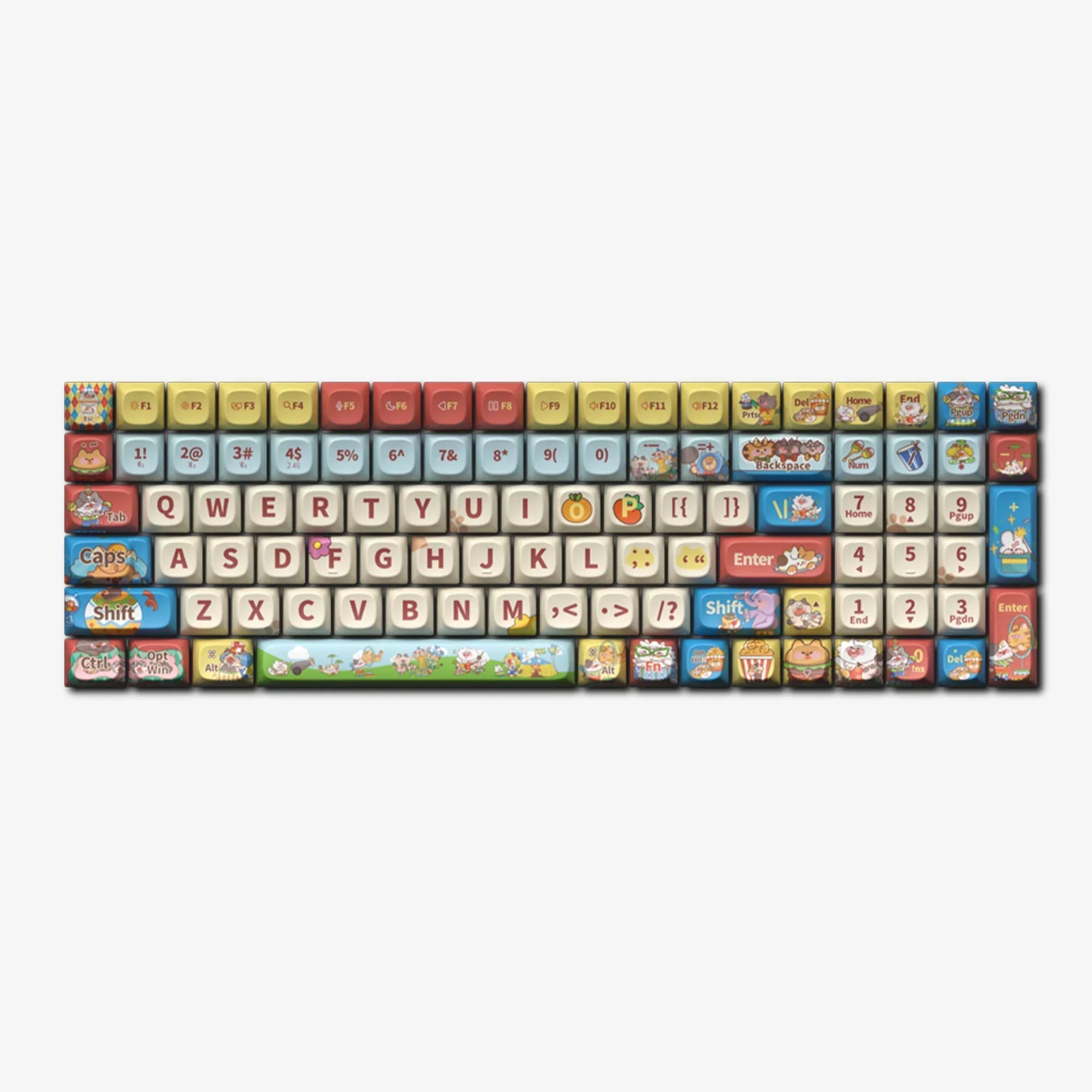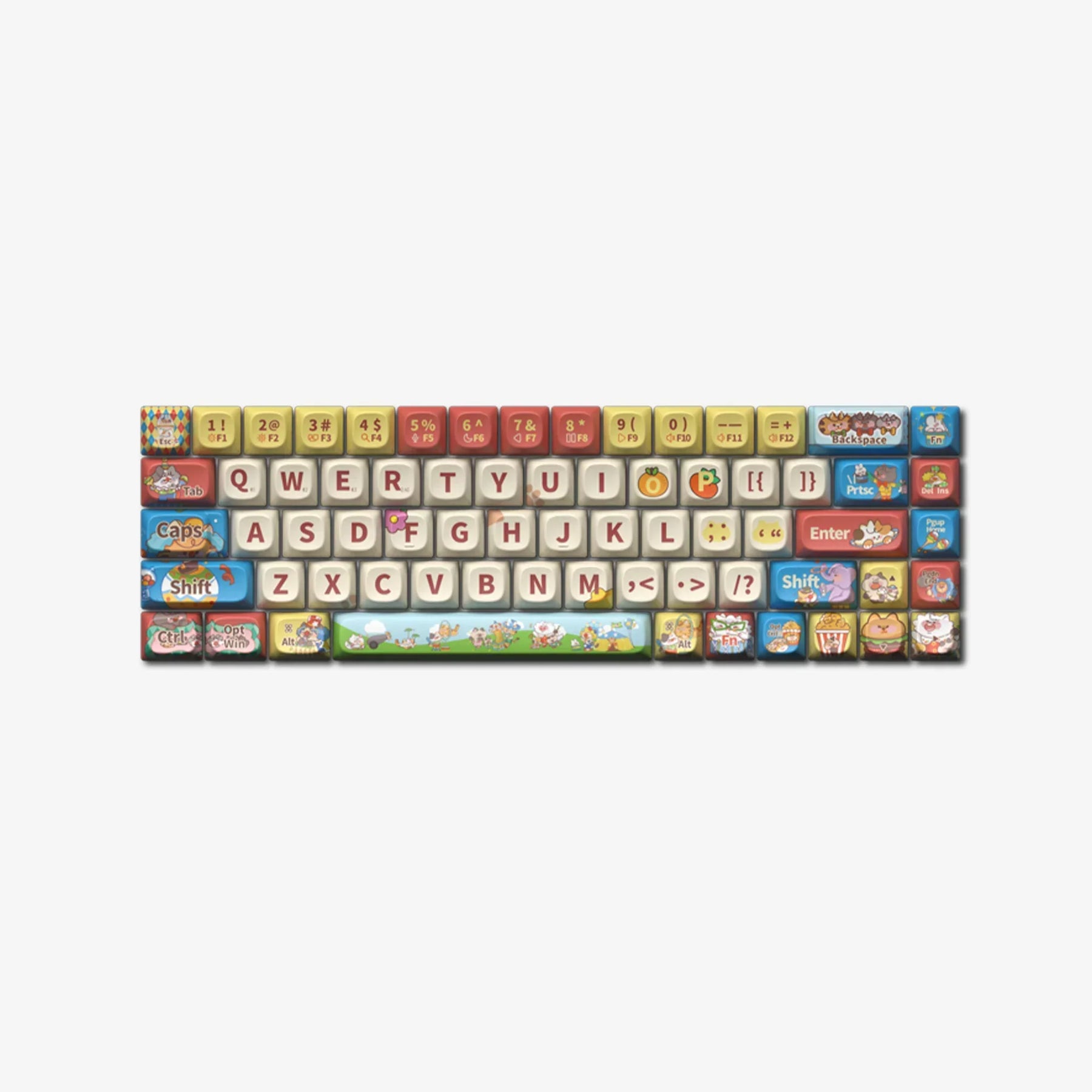 Step right up to the whimsical world of our 'Cats' Paradise' keycaps, where cats are the stars of the Circus. From acrobatic antics and magical illusions to singing sensations and hoop-jumping trainers, these keycaps feature colorful, lively depictions of cats in various circus roles. The primary colors of red, yellow, and blue enhance the playful and dynamic vibe, Bringing the joy of a circus right to your fingertips with these vibrant and amusing keycaps.