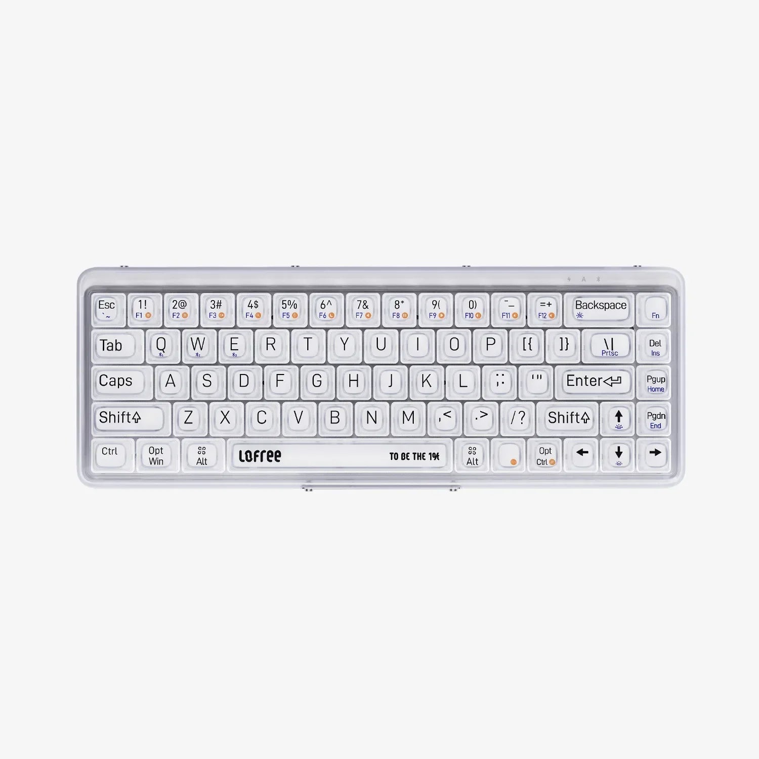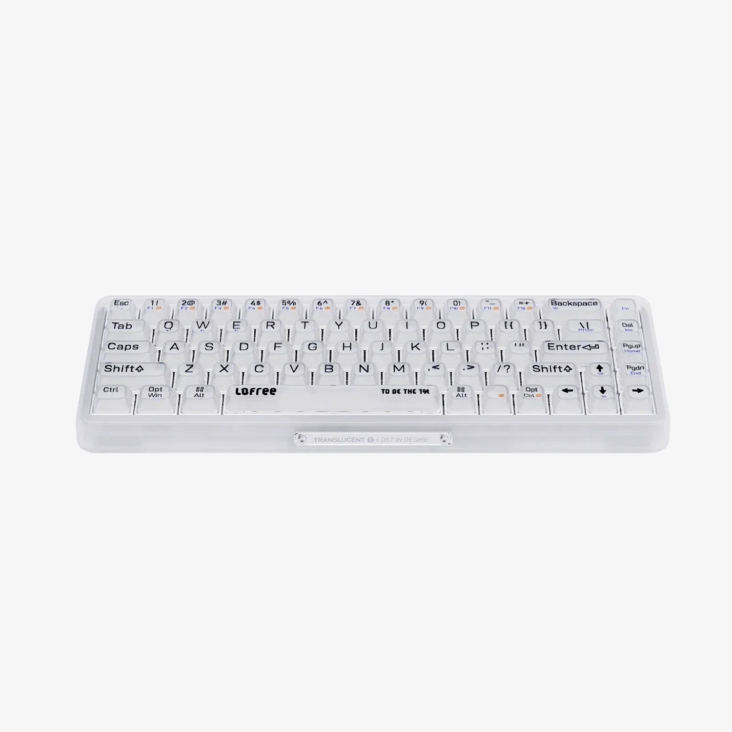 The 'Misty' version of the 1% series boasts a frosted housing, providing a visually appealing look for Office 2㎡. Not as transparent as the original 1%, 'Misty' has a fully frosted white keycaps and chassis, along with upgraded Hot Swap and Poron Silencing Pad functionality for an even better experience. The rich white LED backlit contributes to the attractiveness of the frosted design, completing the desired look of the LOFREE 1% 'Misty' Keyboard.
